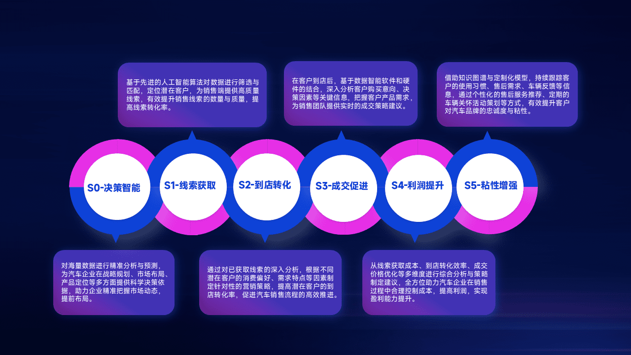 通过拓宽潜在客户来源、、、优化线索分配并提高到店转化率,,,以增强销售效率。。同时,,利用线索数据不断优化分析模型,,有效提升转化率,,,,扩大营销影响力。。。